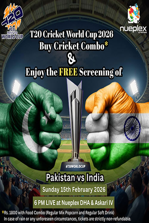 T20 Cricket World Cup 2026 (Pakistan VS India) Sunday 15th February 2026 6 PM LIVE at Nueplex DHA and Askari IV *Rs. 1800 with